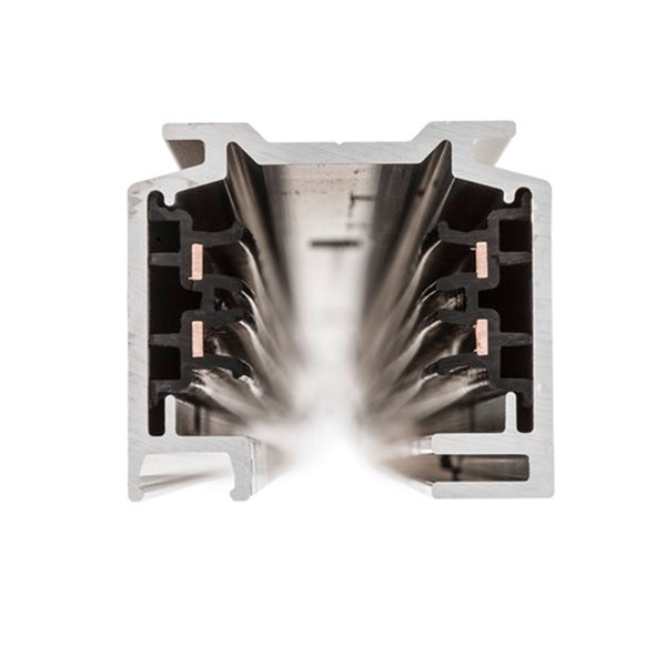Calha trifásica EUTRAC. Qualquer perfil pode ser facilmente cortado para o comprimento desejado. Não é necessário cortar ou dobrar as extremidades dos fios. Ao usar fontes de halogéneo, a altura mínima de instalação é de 2,5 m. Para uso abaixo desta altura, recomendamos a substituição por fontes de LED. NOTA: Custos adicionais de frete podem ocorrer em pedidos de 3 m de calhas.
