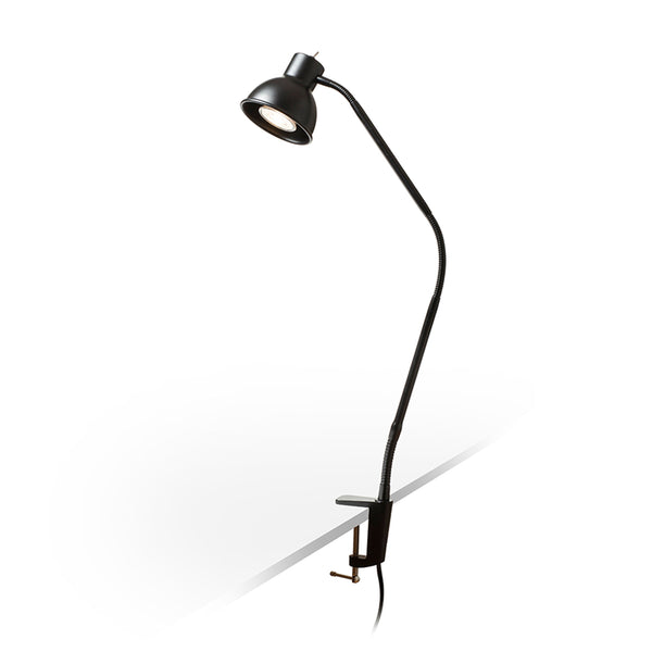 Candeeiro de parede com abajur quadrado em tecido complementado por braço flexível com refletor LED. O candeeiro possui duas fontes de luz, que podem ser controladas separadamente por um interruptor rotativo localizado na base quadrada do candeeiro.