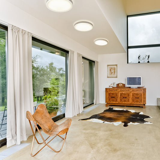 Luminária muito fina montada em superfície com LED de alta potência integrado. A moldura está disponível em cromo, cromo preto, níquel mate, laca branca e imitação de madeira.