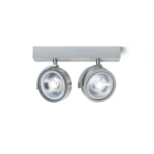 Foco com casquilho GU10 para calhas trifásicas. Podem ser usadas fontes de luz com 111 e 51 mm de diâmetro. Todas as medidas são especificadas sem fonte de luz.