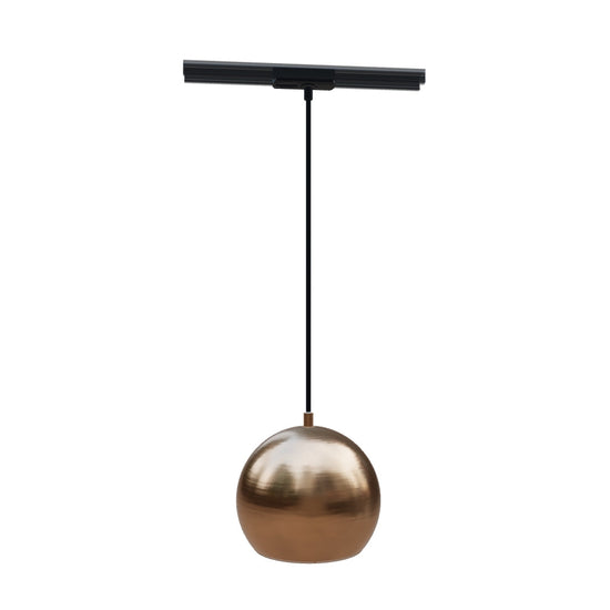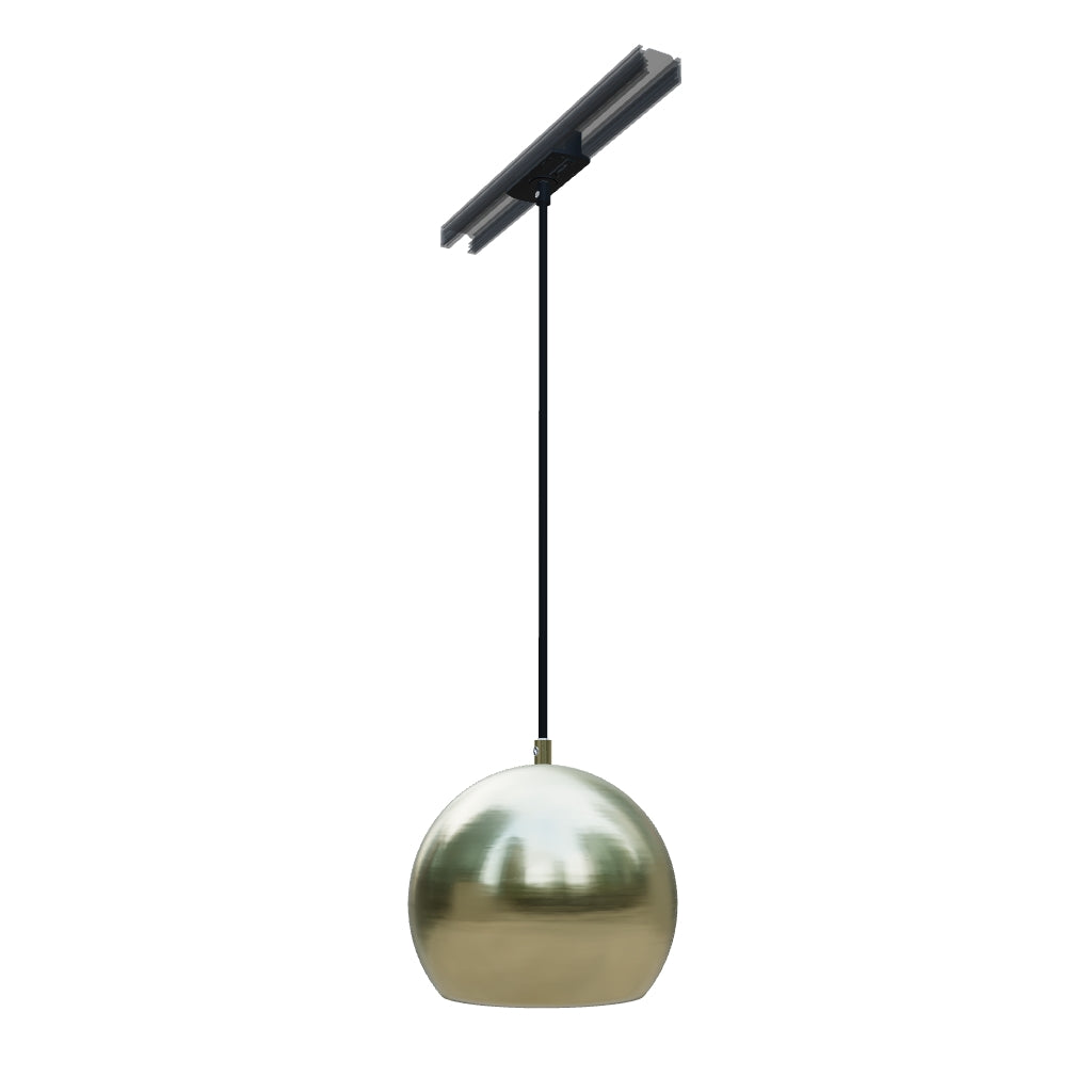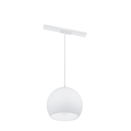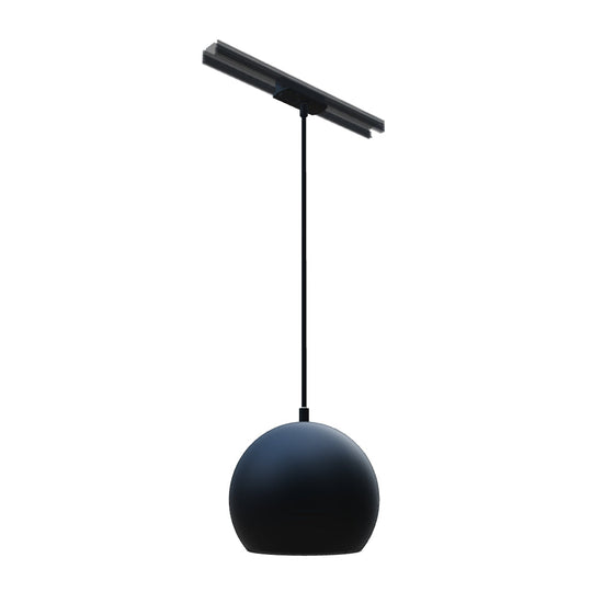 Pendente redondo em metal para utilização com uma fonte de luz E27 adequada. O cabo está ligado a um adaptador para calha monofásica.