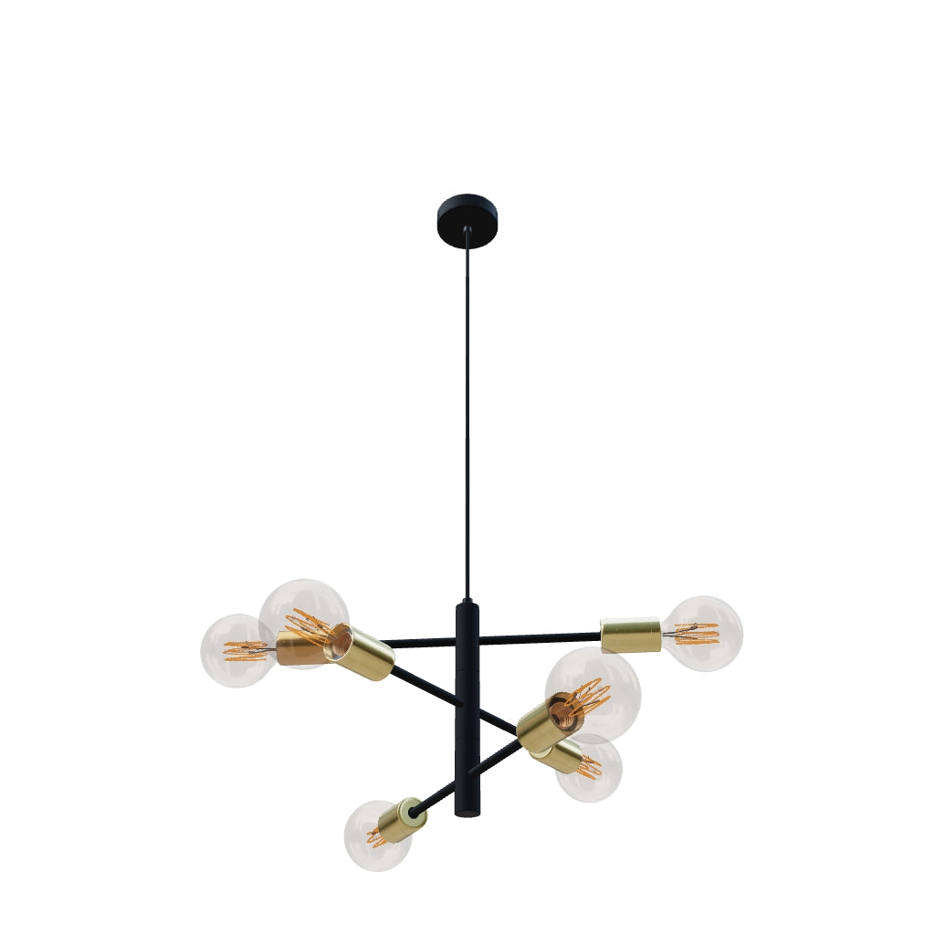 Candeeiro suspenso de design com coberturas decorativas em latão nos casquilhos. A estrutura pode ser moldada ajustando os braços ao longo do eixo horizontal. Adequado para lâmpadas LED com base E27.