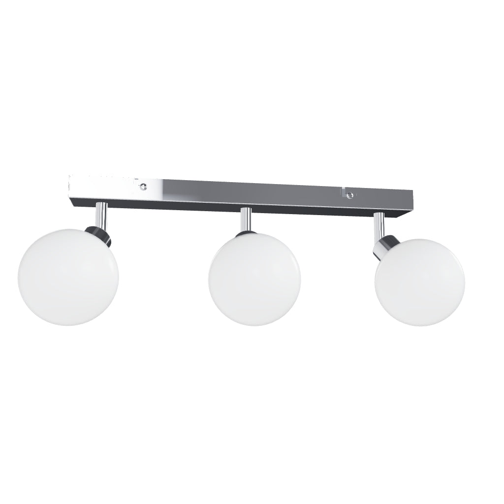 Luminária de parede ou teto com vidro opalino sobre base cromada. Adequado para ambientes húmidos.
