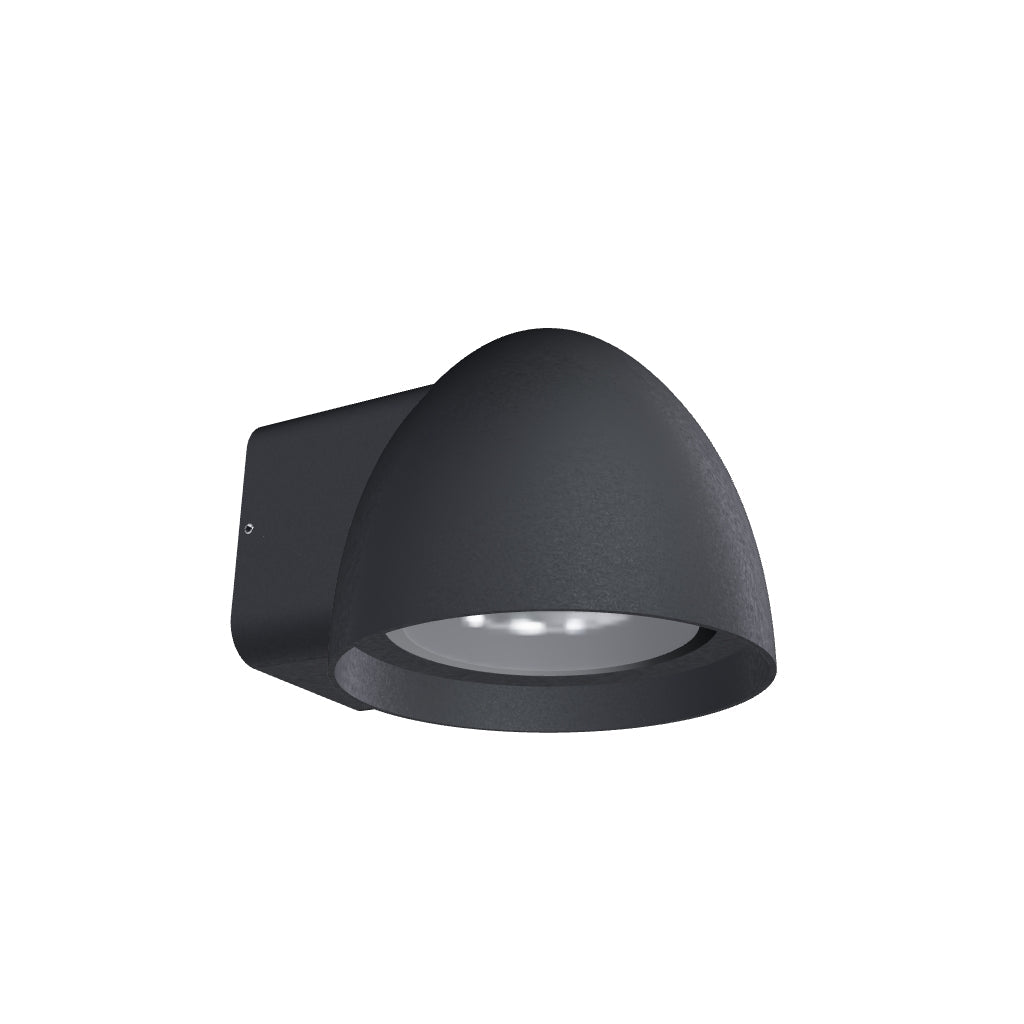 Candeeiro de parede exterior com suporte para fontes de luz GU10. O corpo é em alumínio fundido pintado.