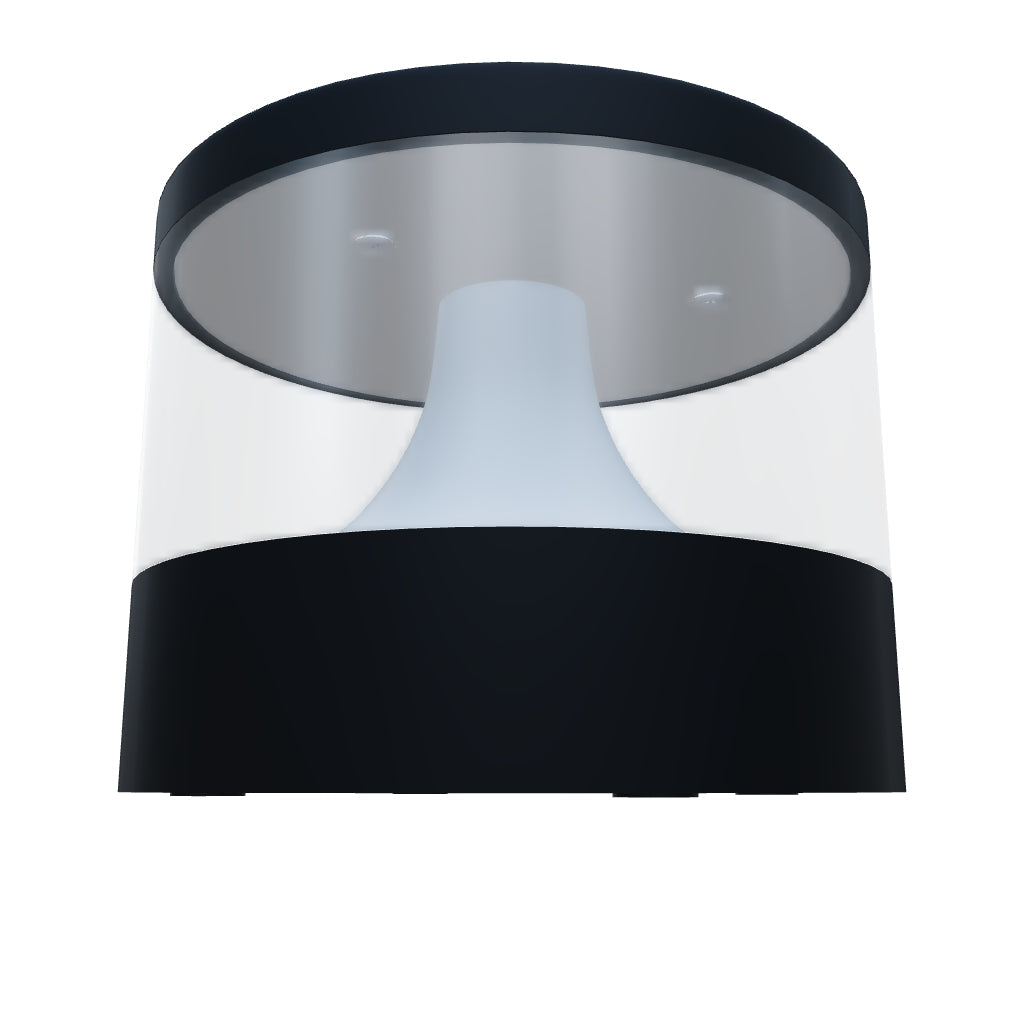 Candeeiro LED de superfície para exterior com emissão de luz suave que irradia uniformemente para os lados.