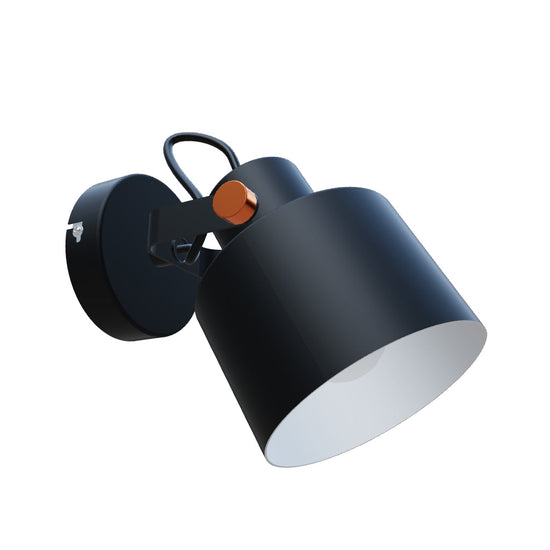 Foco de metal cilíndrico para uso com fonte de luz E27 adequada.