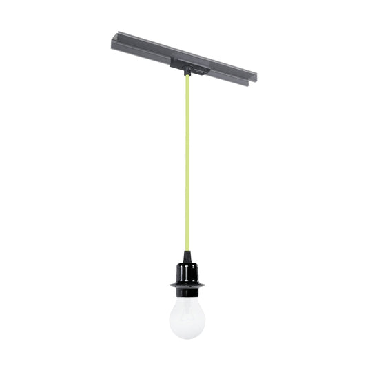 Cabo têxtil em varias cores e combinações com casquilho metálico E27 e com adaptador para calha monofásica. Usar com fonte de luz decorativa ou com abajur disponível.