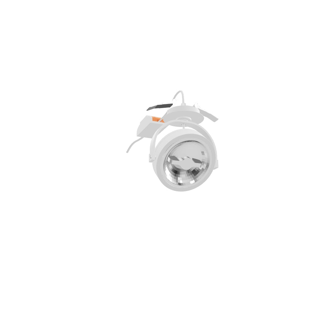 Luz regulável semi-embutida com LED integrado e um foco direcional. Somente para instalação em teto de gesso cartonado. Regulação da intensidade da luz TRIAC.