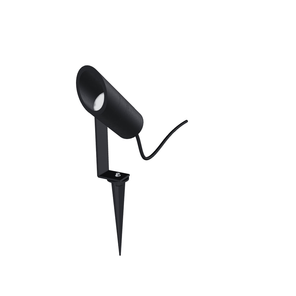 Mini foco LED para exterior com espigão para o solo. Inclui cabo de alimentação de 1m, sem ficha incluída.