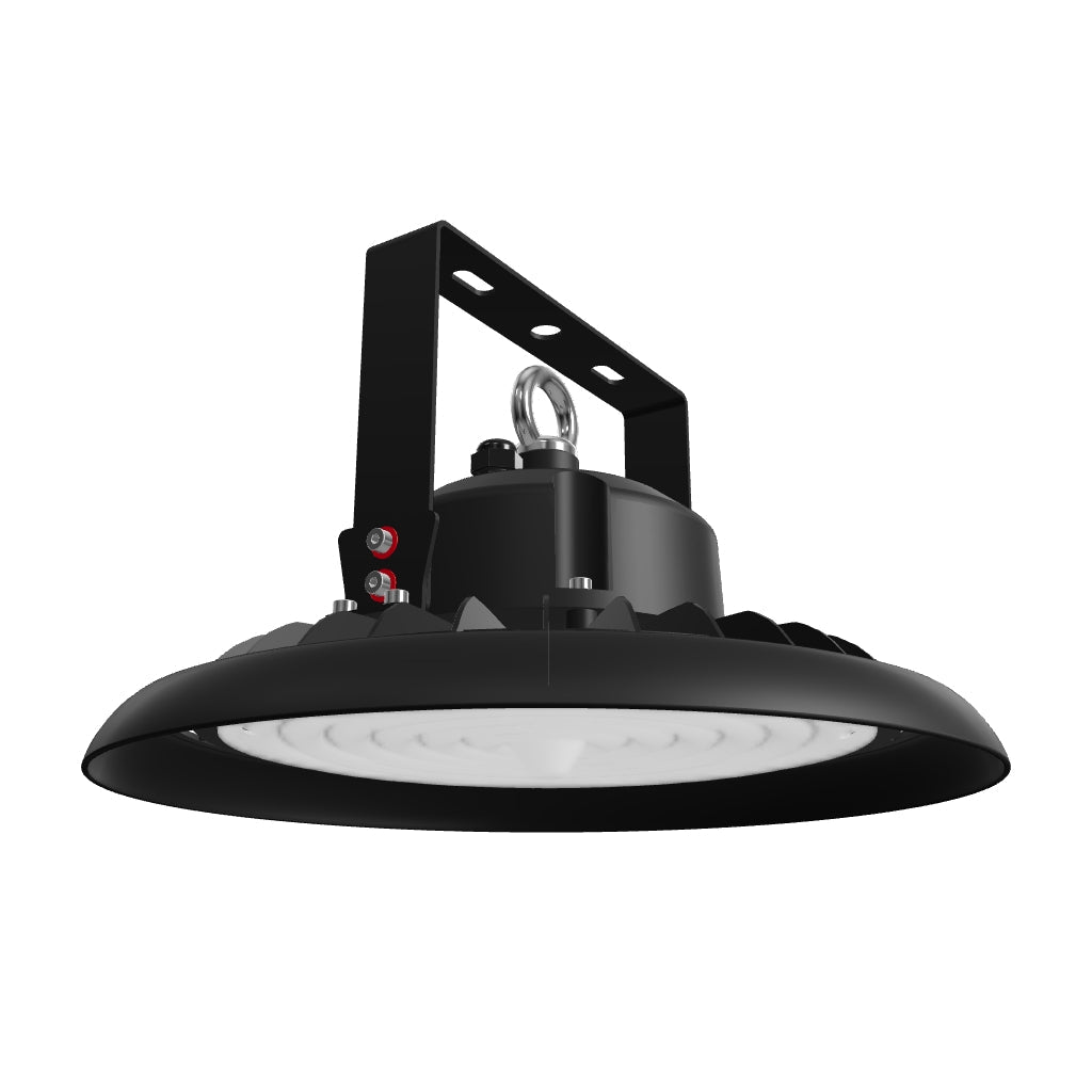 Refletor industrial LED de alta potência para suspensão. Fornecido com cabo de segurança (0,5 m), olhal de suspensão e cabo de alimentação com 0,2 m de comprimento. Recomendamos o uso de IP BOX G12984 para ligar ao seu cabo de alimentação.