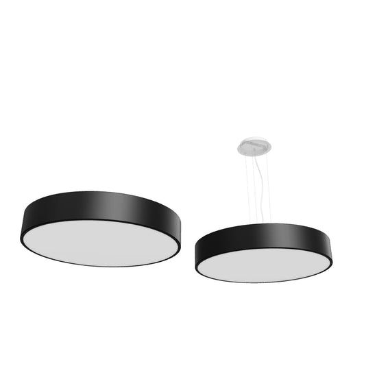 Plafon de teto com fonte de luz LED embutida e moldura de alumínio lacada. O equipamento é fornecido com um difusor de luz em policarbonato fosco. Com o kit de suspensão, o plafon pode ser instalado como um candeeiro suspenso. Regulação da intensidade da luz TRIAC.