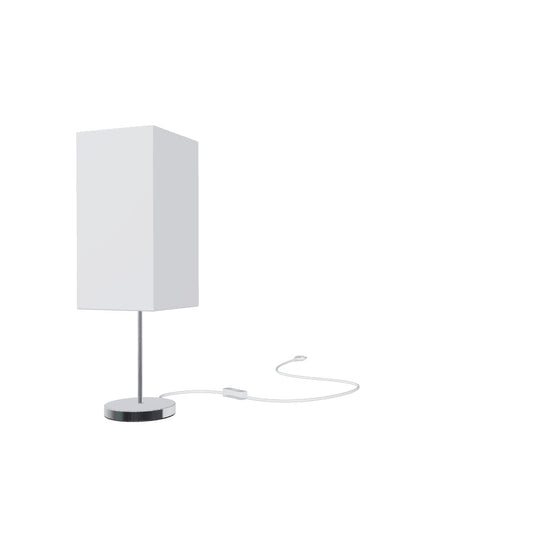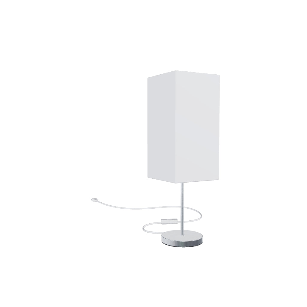 Um candeeiro de mesa com um abajur em tecido numa base metálica. Adequado para fontes de luz LED E27.