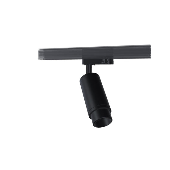 Foco cilíndrico para calha trifásica com possibilidade de ajuste do cone de luz mediante sistema de zoom 10-50 °. A luminária é adequada para fontes de luz LED com casquilho GU10. Use fontes de luz com um ângulo de feixe de 120 ° na luminária para evitar sombras indesejadas.