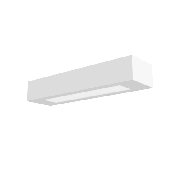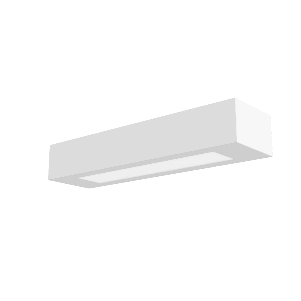 Luminária bidirecional de gesso. A parte inferior tem uma cobertura de vidro acetinado. A superfície pode ser pintada com tintas para interiores.
