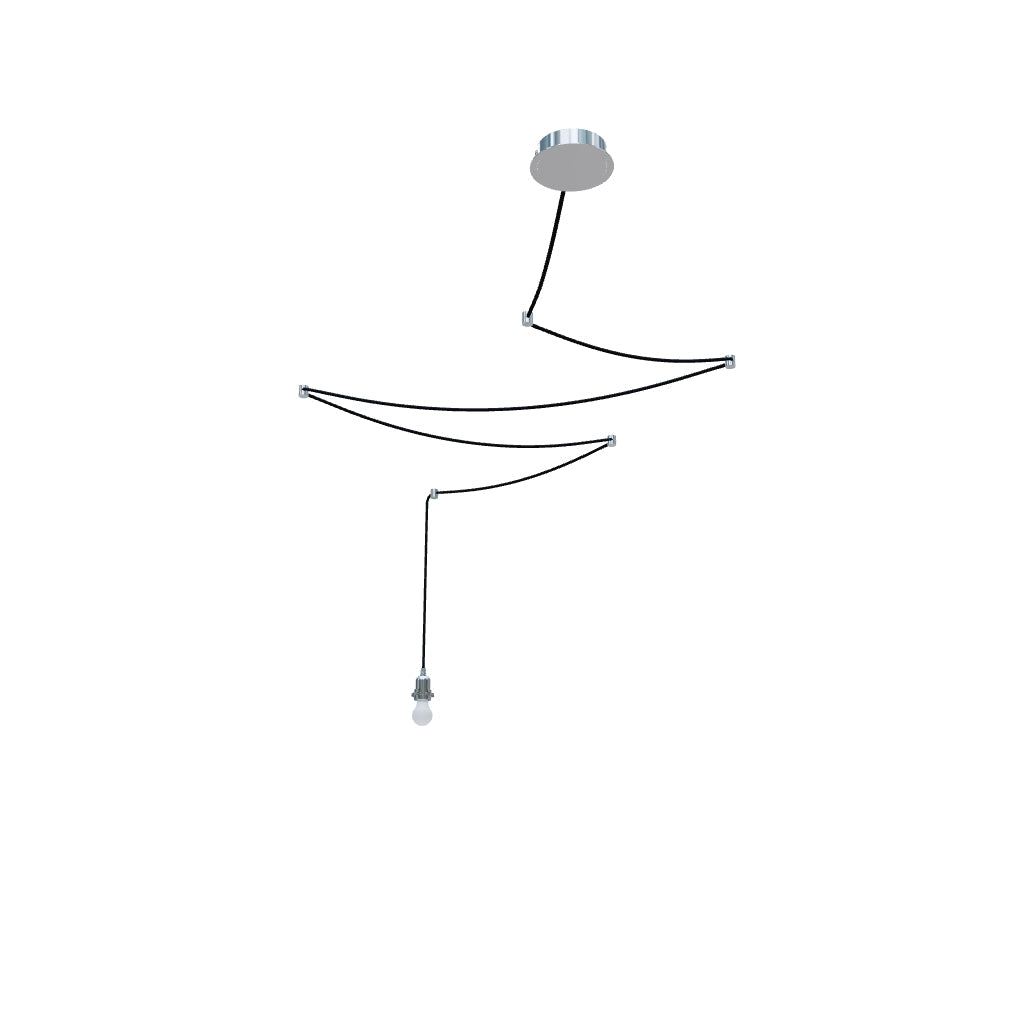 Conjunto variável adequado para uso autónomo com uma fonte de luz E27 decorativa ou com um abajur leve. O conjunto pode ser fixado no teto ou parede usando as alças colocadas no cabo têxtil preto. O conjunto contém 4 peças de alças de plástico pretas ou 4 alças de cromo. Estas também podem ser pedidas separadamente. Adequada para abajures: ARISTA, ASPRO, DOUBLE, JAKARANDA, RON.