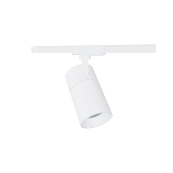 Foco cilíndrico regulável para calha monofásica ajustável de cor clara: branco quente (WW), branco neutro (NW), branco frio (CW). Regulação da intensidade da luz TRIAC.