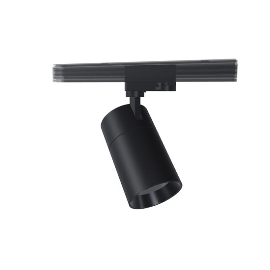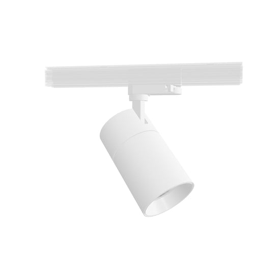 Foco cilíndrico regulável para calha monofásica ajustável de cor clara: branco quente (WW), branco neutro (NW), branco frio (CW). Regulação da intensidade da luz TRIAC.
