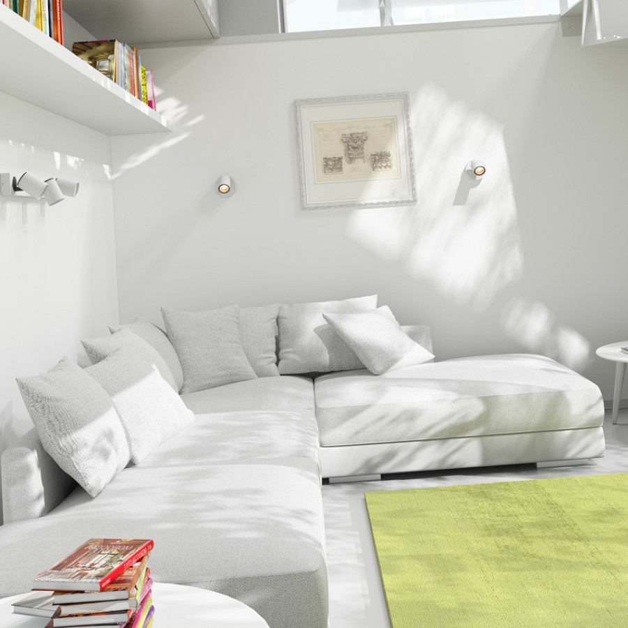 Spot luz feita de metal branco pintado com detalhes de antracite.