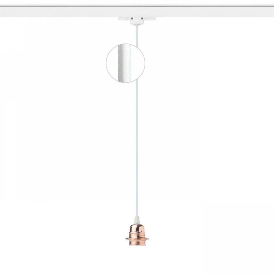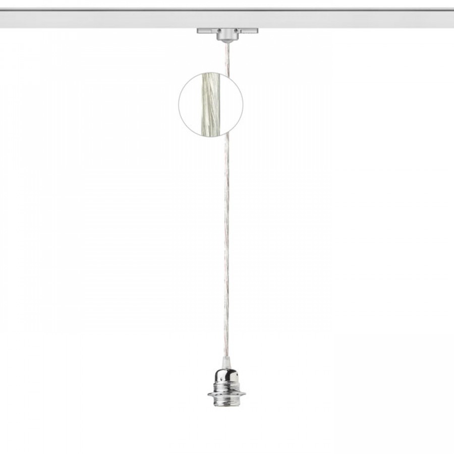 Cabo de têxteis em várias combinações de cores com manga metálica E27, para uso com uma lâmpada decorativa ou uma tonalidade adequada. O cabo termina com um adaptador para pendurar na barra de três trilhos.
