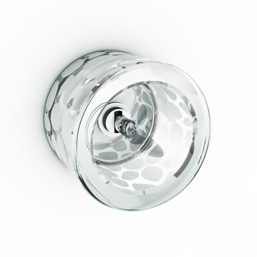Luminária embutida com abajur de vidro transparente, decorado com textura cetinada.